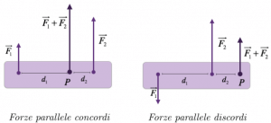 Le forze parallele sono, come dice il nome, forze che hanno rette d’azione parallele; in particolare, le forze parallele possono essere di due tipi: