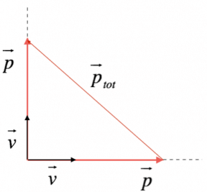 Poiché i vettori sono tra loro perpendicolari, la quantità di moto totale è data da: